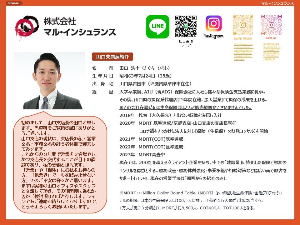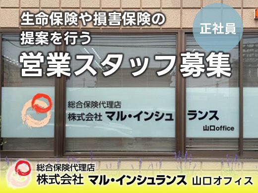 保険へのご加入を検討されている方(法人・個人)へ最適な保険をご提案します。 複数の保険会社の商品を扱う総合代理店として生命保険・損害保険を幅広く提案できることが当社の強みです! ノルマや知人勧誘、無理やりの押し売りは一切ありませんので、お客様一人ひとりと向き合う時間を大切にしてくださいね。 人に喜ばれる仕事をしたい方におすすめの環境です。 (主なお仕事) まずはお客様のご要望や不安に思っていることなどをヒアリングします。 ヒアリングを通して、お客様ご自身も気が付いていない将来のリスク等を一緒に確認しながら、お客様に必要な補償、最適なプランをオーダーメイドでご提案します。 「営業」という枠にとらわれず、相手の立場になって考えられる方はお客様との信頼関係を築けます! 法人様への新規営業が多く、リモート通話を活用して山口県外の企業様へのアプローチも行っています。 ・ニーズのヒアリング ・最適な補償、保険プランのご提案 ・契約後のアフターフォロー ・保険の更新、見直し ・新規商品のご案内 ・法人様の福利厚生整備のサポート など (入社後の流れ) 未経験者の方は、入社後は保険会社へ出向していただき、2年間の研修を受けて頂きます。 研修では座学やロープレなど通して、保険の知識やお客様とのコミュニケーションの取り方などを学びます。 ↓ 研修終了後は、いよいよ当社の一員として実務をスタートしていただきます。 いきなり一人にせず、先輩スタッフによるOJTや営業同行でしっかりと指導、サポートします! 先輩スタッフの半数以上が中途採用で前職は実に様々です。 保険営業は全くの未経験から成長して活躍しています!!